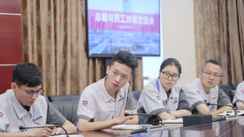5月20日,在中国巨石总裁与员工对话交流会上,公司党委书记、总裁杨国明与27名来自公司生产经营各个岗位的员工,话公司发展、谋工作举措。公司相关单位负责人参加交流会。