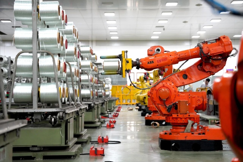 走进巨石成都智能制造基地,玻纤纱团有序列队自动输送,随后贴标、分拣、AI质检、称重、包装、入库,实现了全厂区、全流程的智能监控与集中调度。这些智能化场景的实现,根植于巨石在工业机器人创新研发、人工智能检测技术、人机协同交互系统以及智能控制集成等领域的硬核实力。