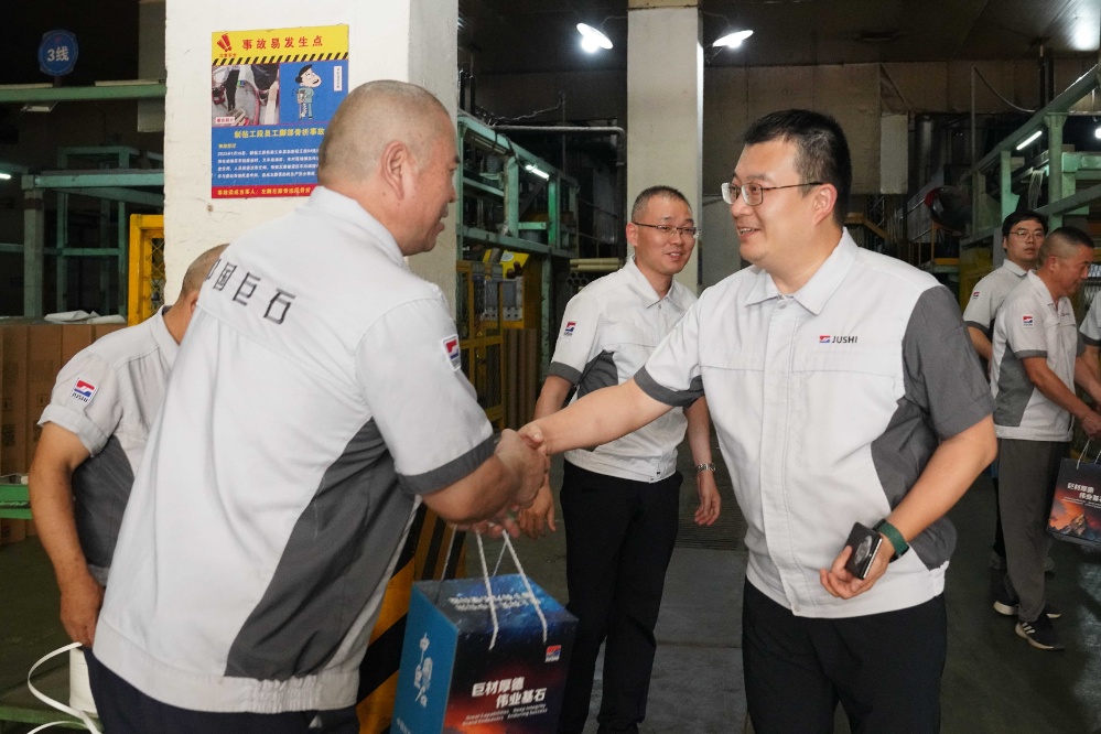 中国巨石党委副书记、工会主席邵晓阳一行来到磊石公司、五分厂、公辅保障中心燃气站慰问。